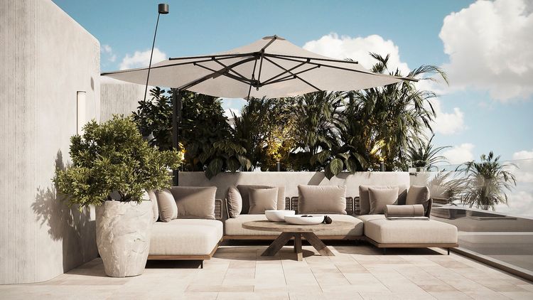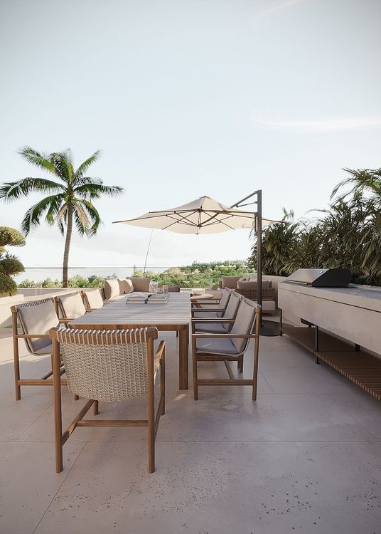 A highlight of this luxury complex is the extensive outdoor living areas each apartment offers. All units boast large private outdoor spaces, perfect for soaking up the Mediterranean sun or enjoying stylish al fresco dining.